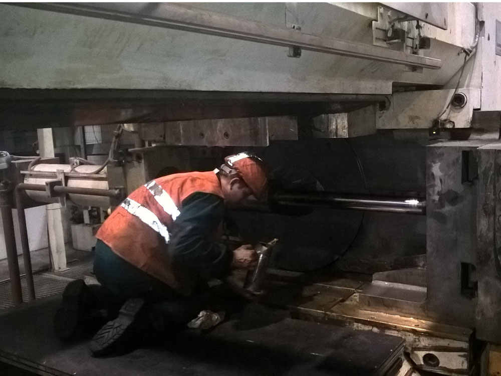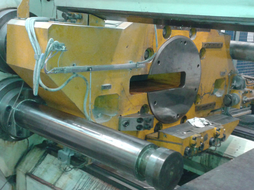 További igényes és pontos munkánk volt a gép egytengelyűségének beállítása. A legfontosabb a gép présfejének és recipiensének továbbá szerszámának tengelybe állítása. Ezt a munkát megrendelőnk utasításai alapján végeztük. Sokan nem gondolnák, de az ilyen nagy présgépeket is (a szóban forgó gép 4400 tonna préselőerővel rendelkezik) tizedmilliméter pontossággal állítják be.